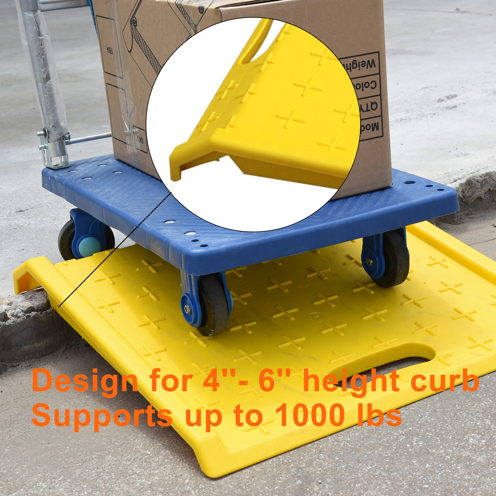 My shipping container sits on railroad ties that are nearly flush with the ground but still leaving a 10″ step up into the container. We needed a way to get a dolly in and out safety and this was the answer. Very stable. Non slip design. Works great and super light weight making it easy to move around. Takes up virtually no space when not being used.