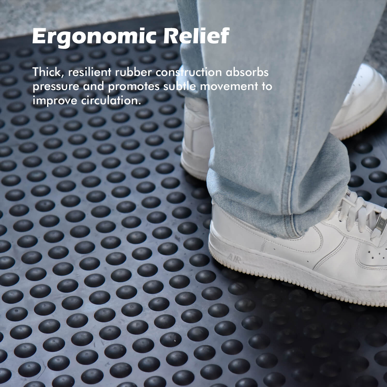 ✔ Ergonomic Relief – Thick, resilient rubber construction absorbs pressure and promotes subtle movement to improve circulation.