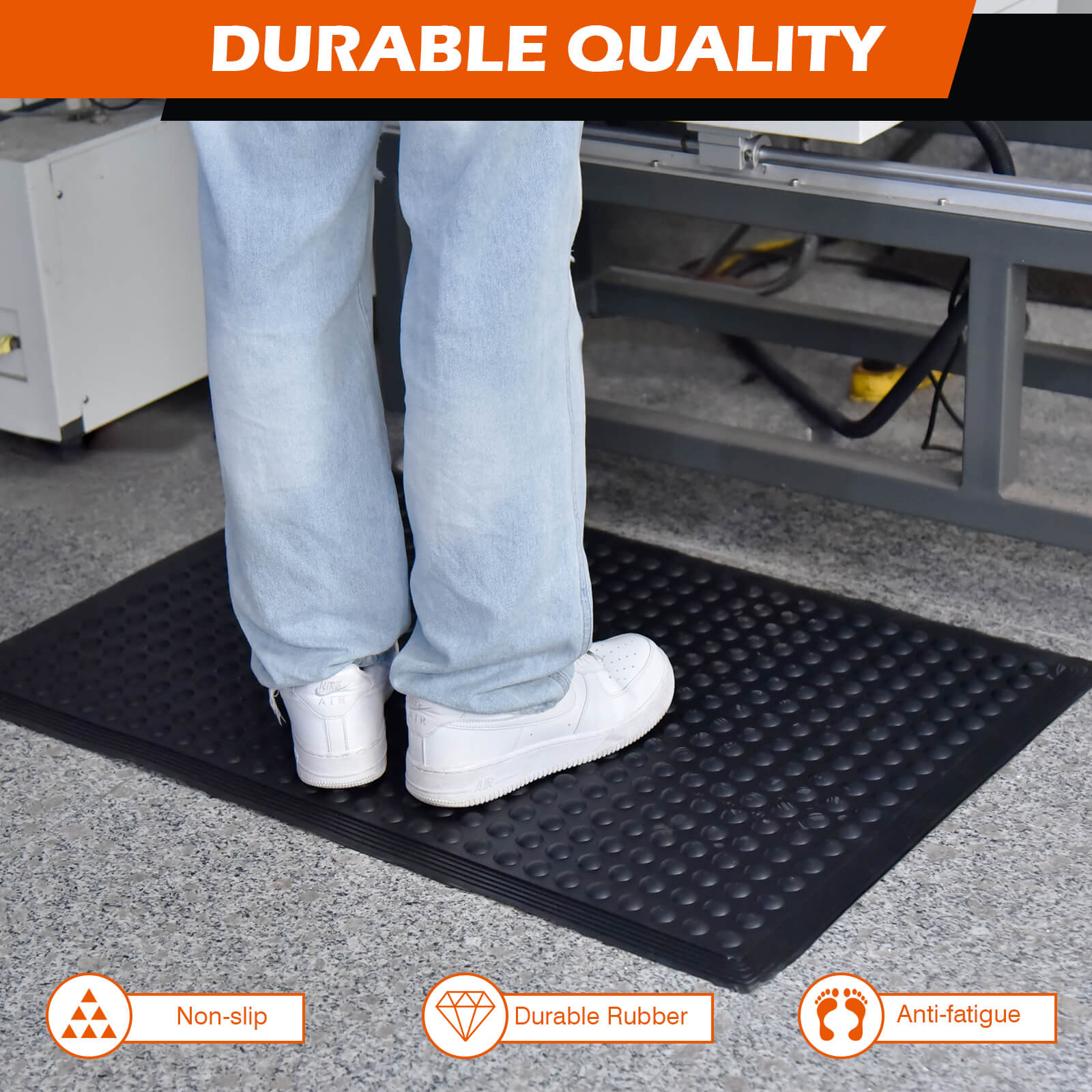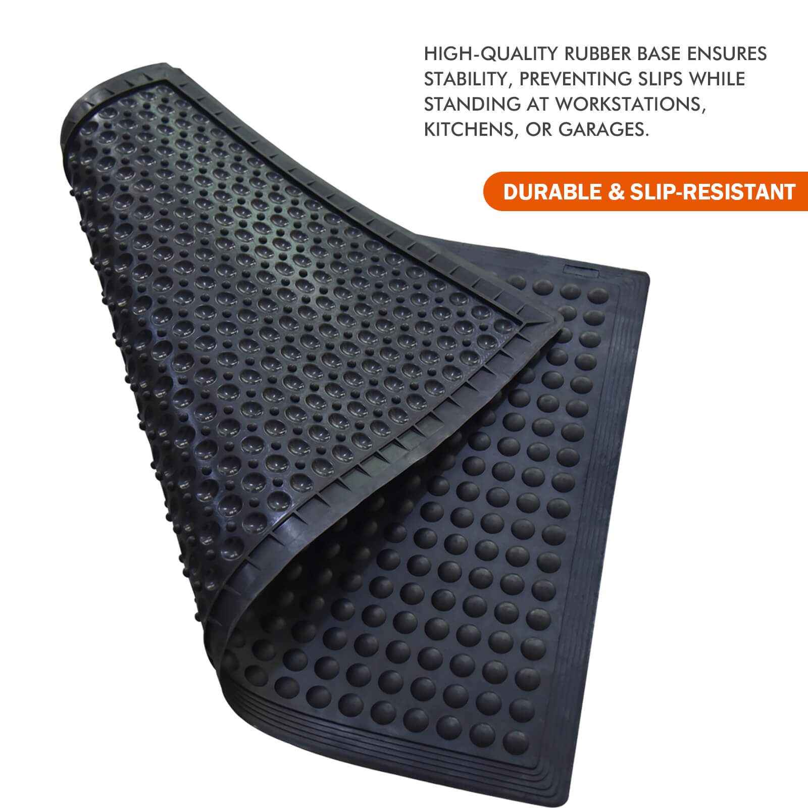 ✔ Durable & Slip-Resistant – High-quality rubber base ensures stability, preventing slips while standing at workstations, kitchens, or garages.