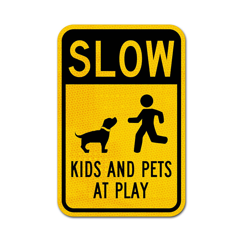 Keep little ones safe! Our eye-catching “Slow – Kids & Pets At Play” sign is designed to alert drivers to slow down and stay vigilant in areas where children and pets are present. Perfect for residential streets, cul-de-sacs, and suburban neighborhoods, this durable sign promotes safer driving habits to protect your most precious loved ones.